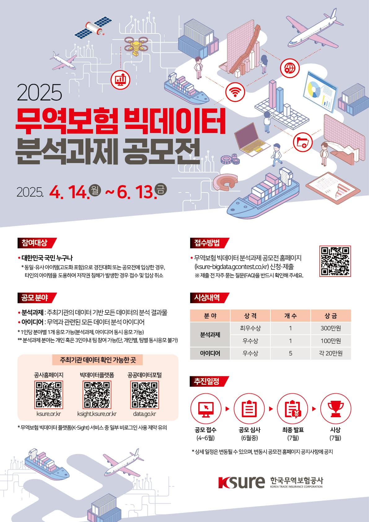 • 자세한 사항은 공모전 홈페이지(http://ksure-bigdata.gcontest.co.kr)를 참고해 주세요.
