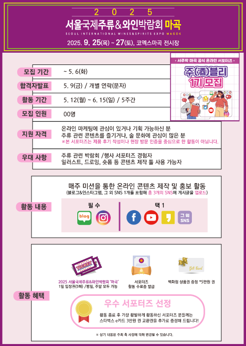 - 박람회, 주류 관련 서포터즈 경험자