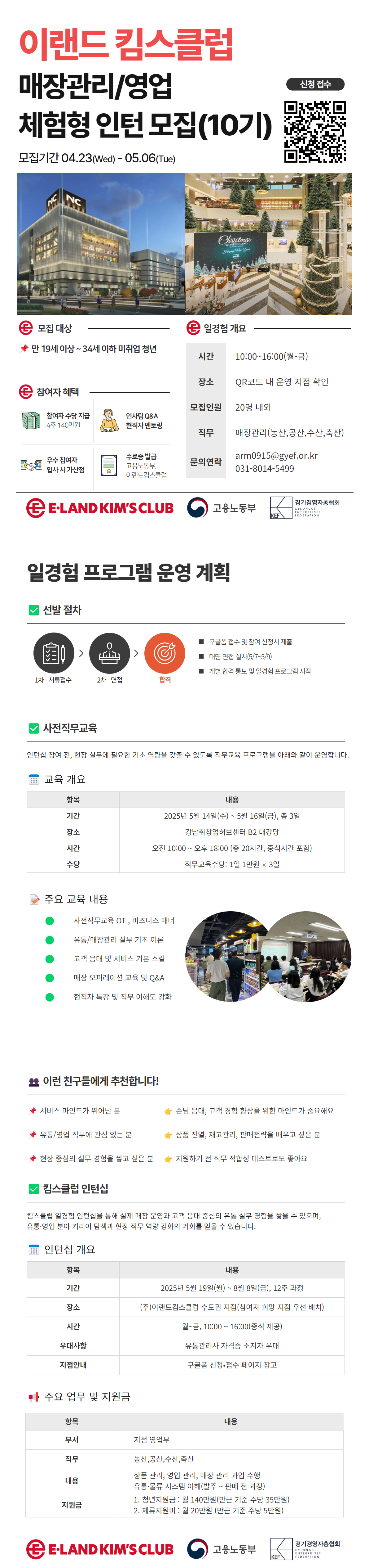 (주)이랜드킴스클럽 영업·매장관리 일경험 인턴[10기]