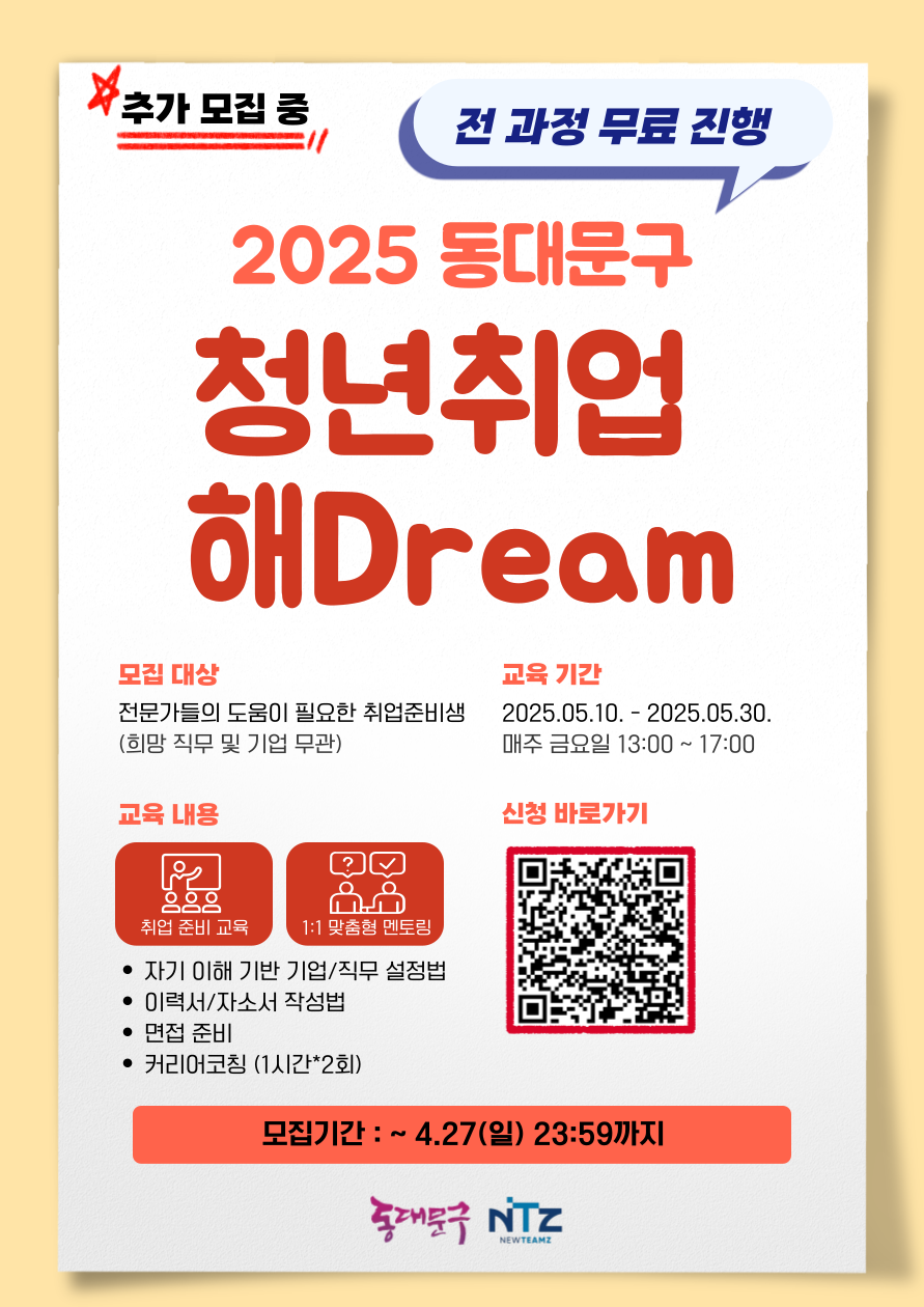 🎇 2025 동대문구 청년취업 해Dream 참여자 모집(취업 스타터즈 모집 연장!) 🎇