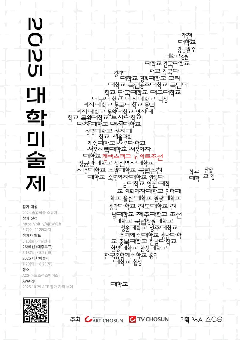 <2025 대학미술제: 캔버스리그>는 PoA와 아트조선이 공동 주최하는 전국 단위 예술 프로젝트로,