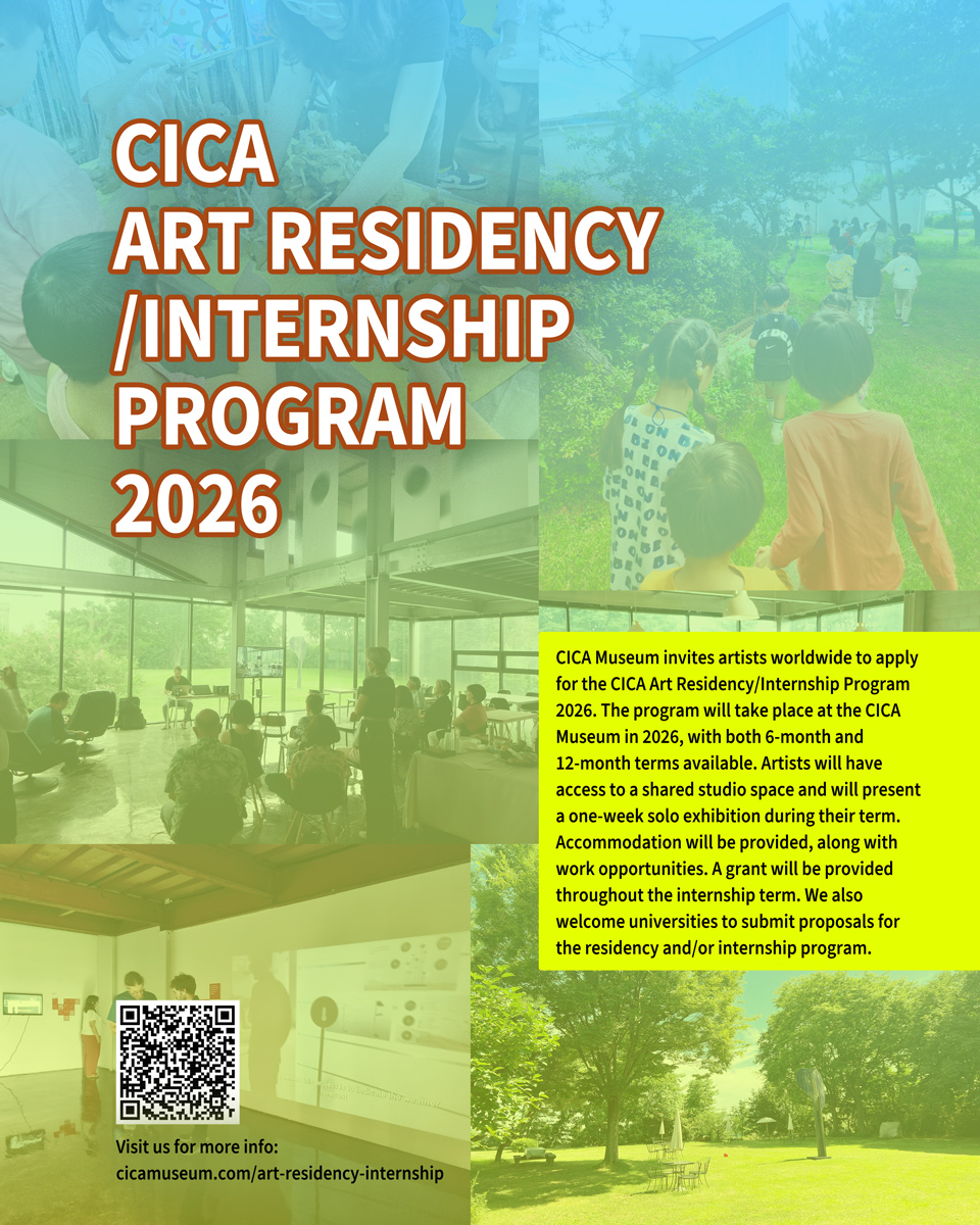 CICA Museum invites artists worldwide to apply for the CICA Art Residency/Internship Program 2026. The program will take place at the CICA Museum in 2026, with both 6-month and 12-month terms available. Artists will have access to a shared studio space and will present a one-week solo exhibition during their term. Accommodation will be provided, along with work opportunities. Participants are expected to work 14 hours per week. A grant will be provided throughout the internship term. Participating artists will also be featured in the e-book CICA Art Now 2026, with a print edition available by order. We also welcome universities to submit proposals for the residency and/or internship program.