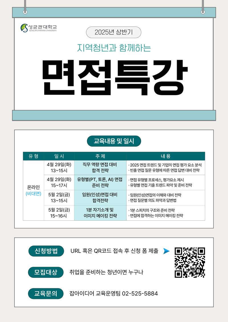 [성균관대학교] 2025년 상반기 서류전형 대비 취업특강 지역청년 참여자 모집(~5/2)