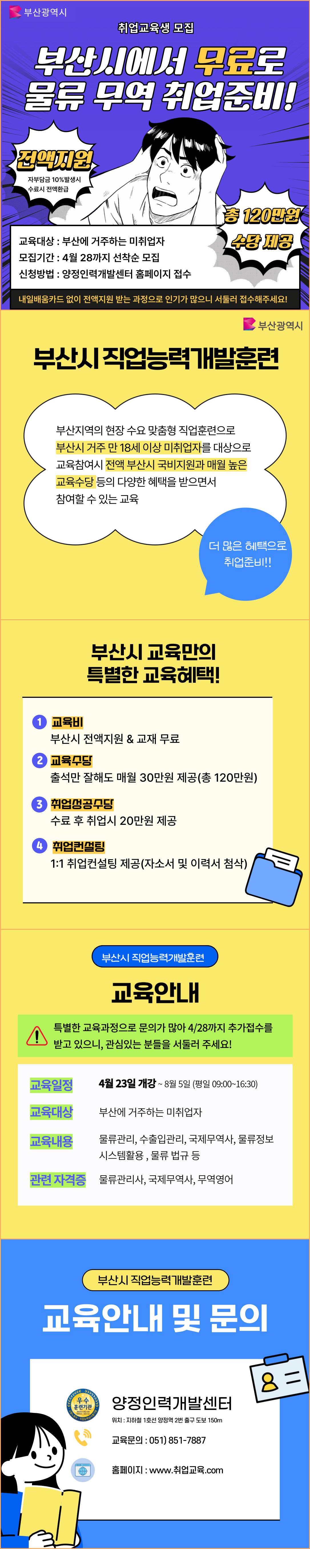 - 교육장소 : 우수훈련기관 양정인력개발센터(부산)