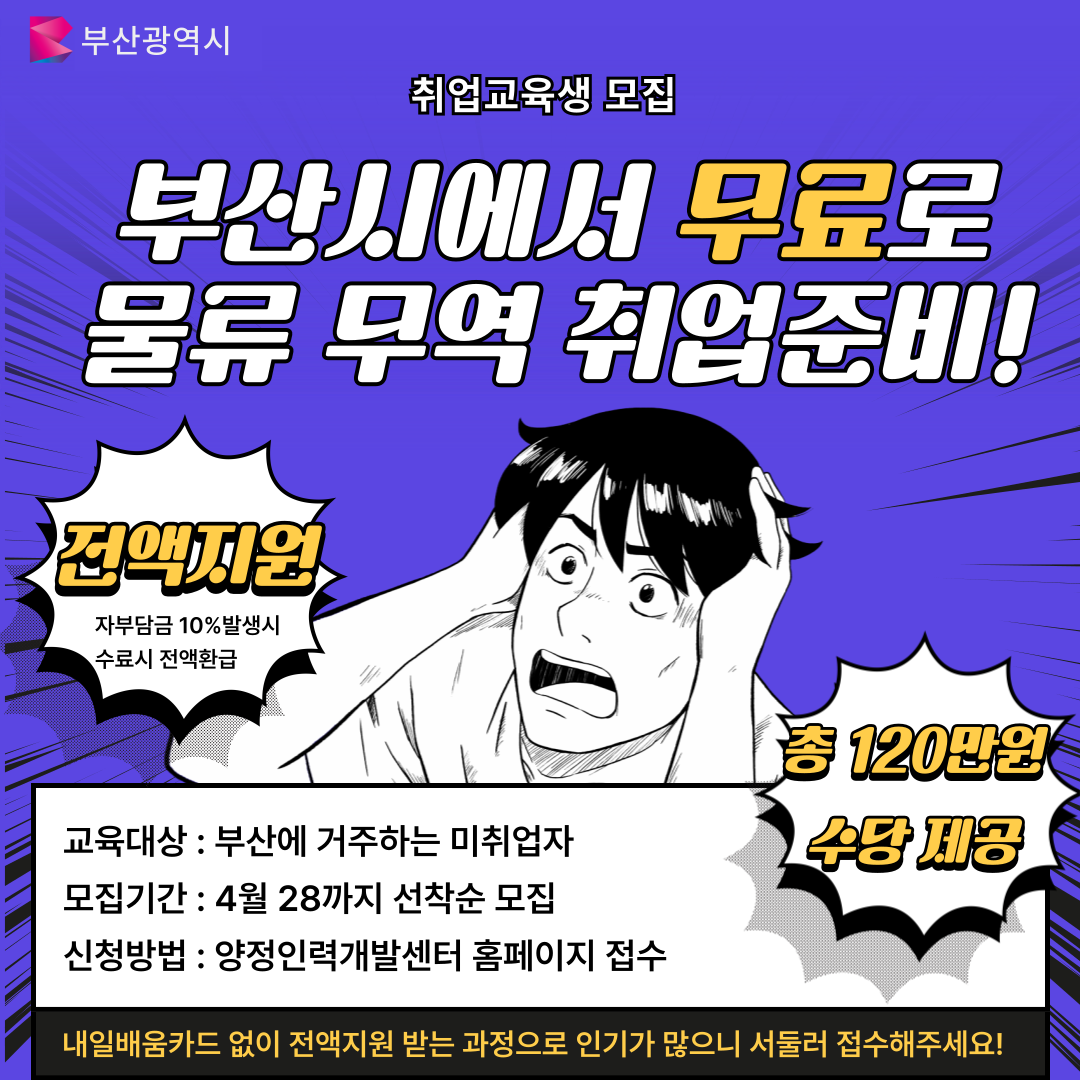 ✔️부산에 거주하는 미취업자라면 전액지원!!