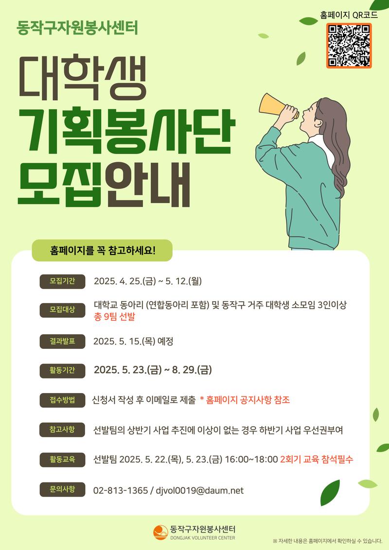 [동작구자원봉사센터] 2025년 대학생 기획봉사단 공모사업 참여 동아리 모집 공고(상반기)