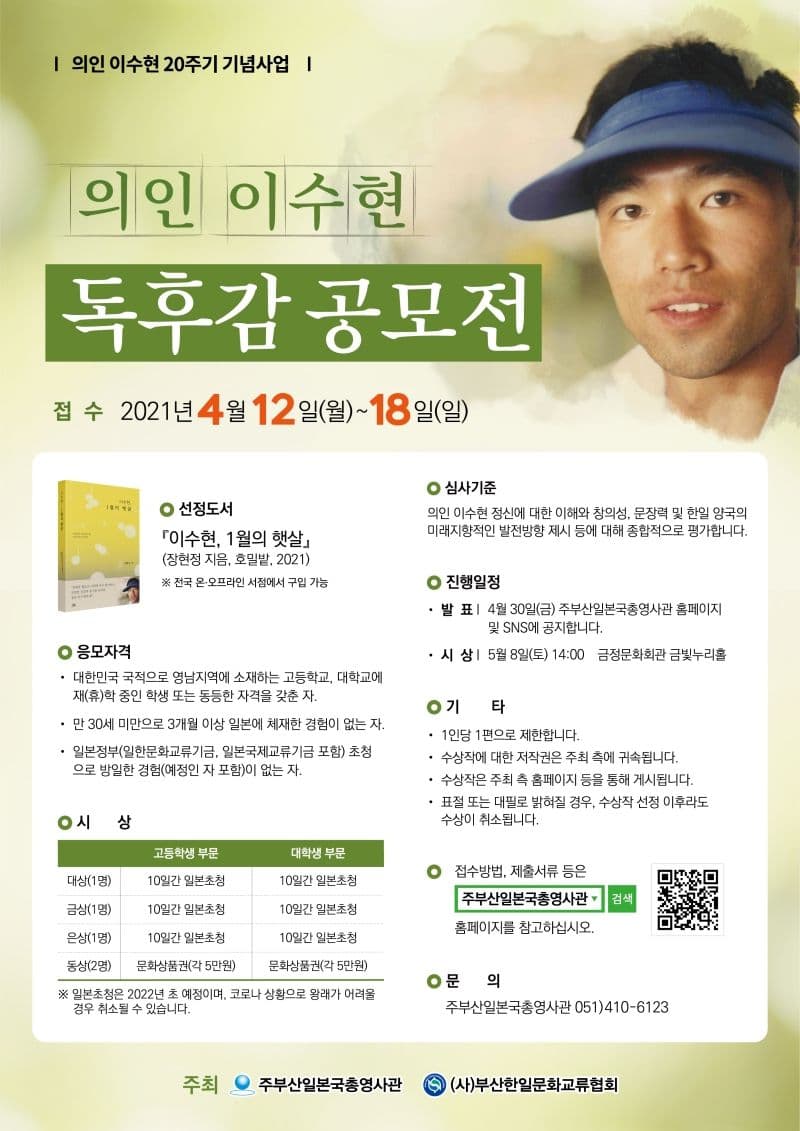 - 발표: 4월 30일(금) 주부산일본국총영사관 홈페이지 및 SNS에 공지합니다.