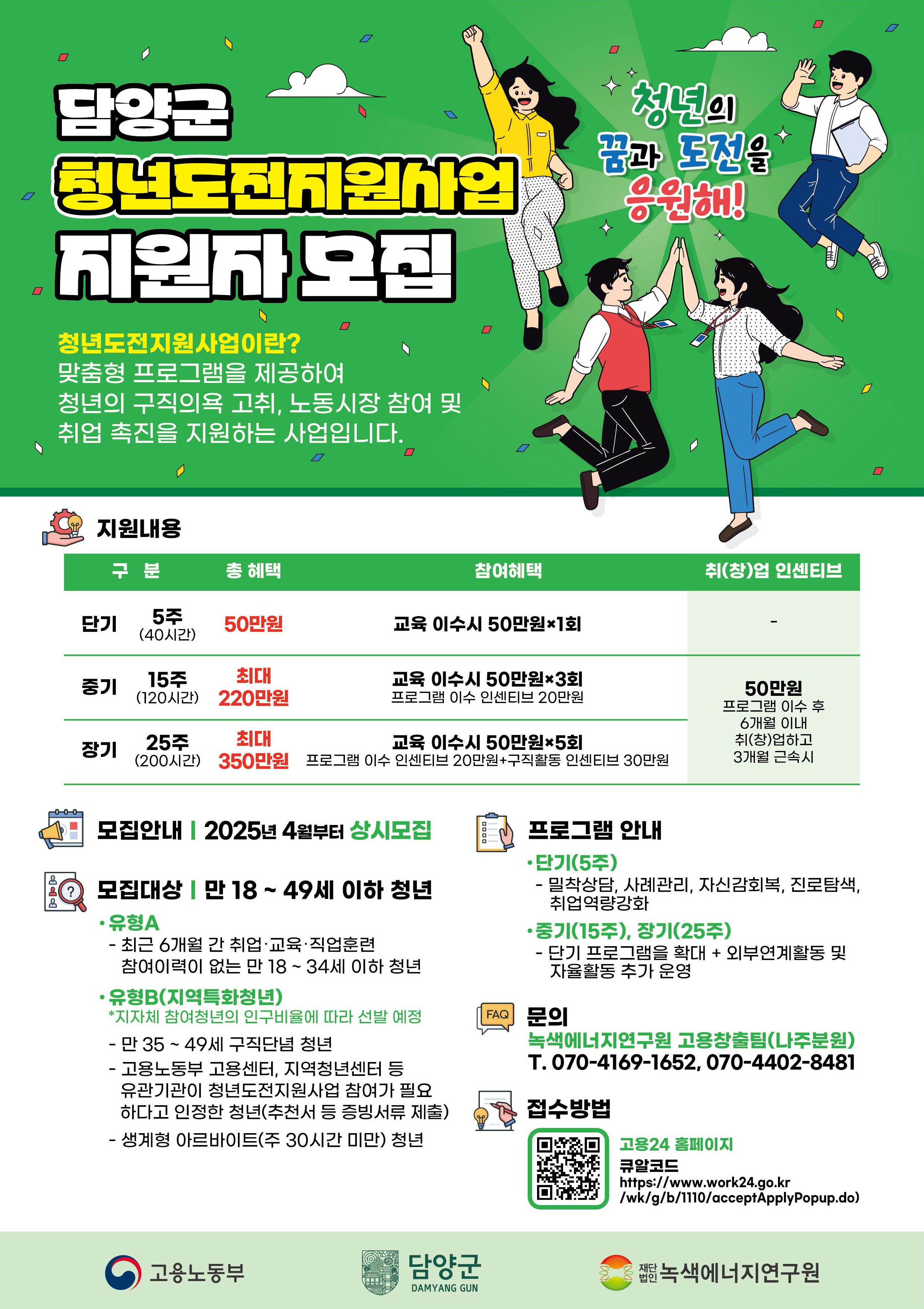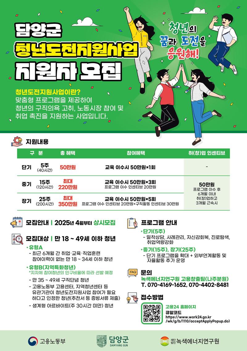 👉 https://www.work24.go.kr/cm/main.do → 통합검색에서 “청년도전지원사업 담양군” 검색