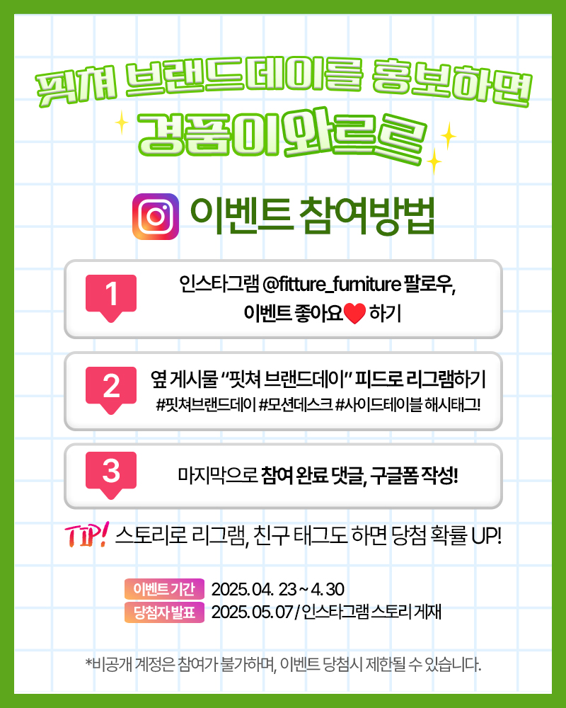 모션데스크, 사이드테이블, 리클라이너 등 핏쳐의 BEST 제품들이 할인중이니, 많이 홍보해주세요~~