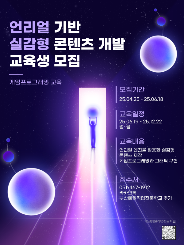 언리얼 엔진과 C++를 활용해 실감형 가상콘텐츠와 게임 개발 과정을 폭넓게 배웁니다.