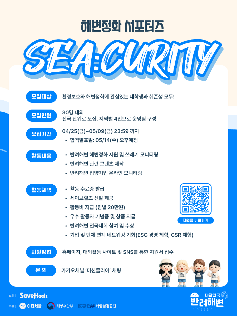 [모집] 바다를 지키는 청년 서포터즈 🌊 씨:큐리티 SEA:Curity 모집!