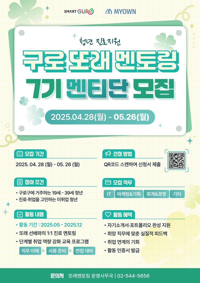 👉 설문 링크: 2025 구로 청년 진로지원 또래 멘토링 7기 멘티단 신청