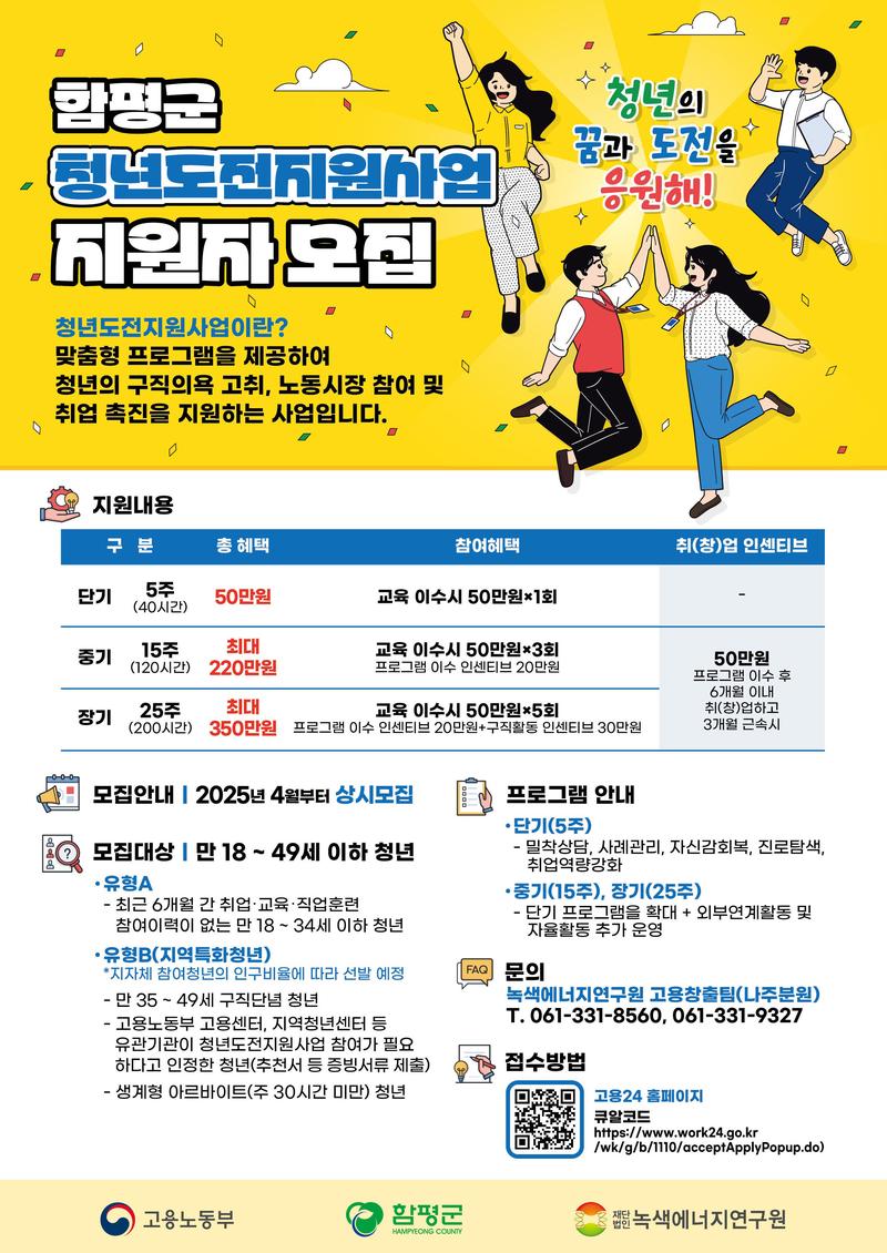 👉 https://www.work24.go.kr/cm/main.do → 통합검색에서 “청년도전지원사업 함평군” 검색