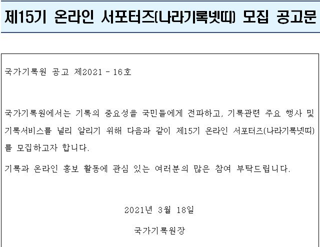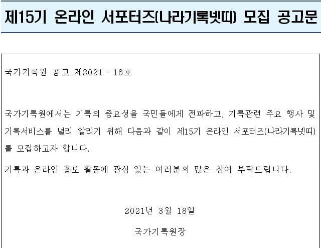 제15기 온라인 서포터즈(나라기록넷띠) 모집