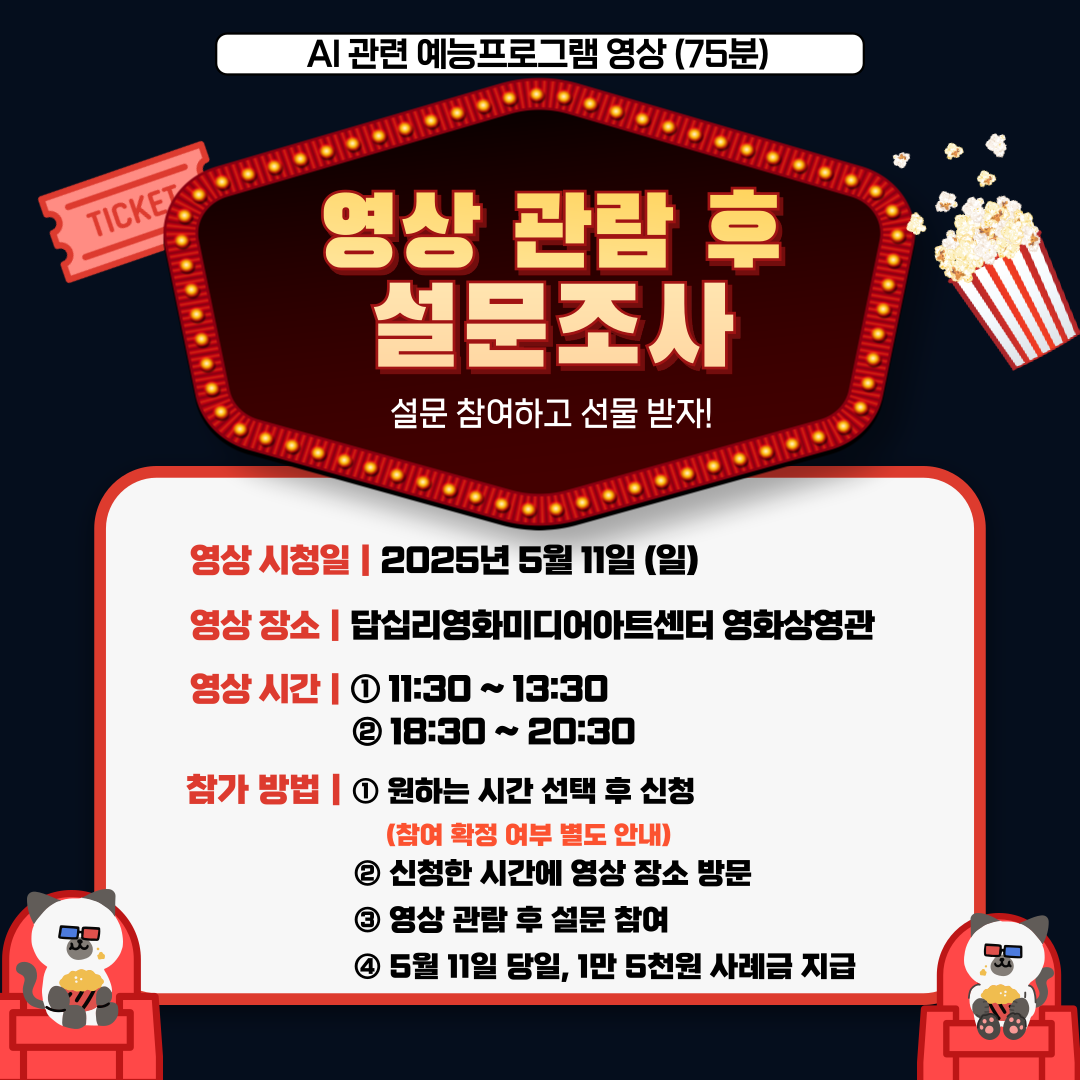 영상 관람 후 설문조사에 참여해주실 분들을 모집합니다.