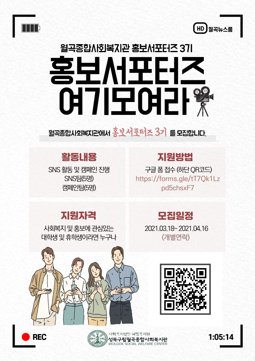 월곡종합사회복지관에서 홍보서포터즈3기 "홍보 is 뭐든"을 모집합니다.