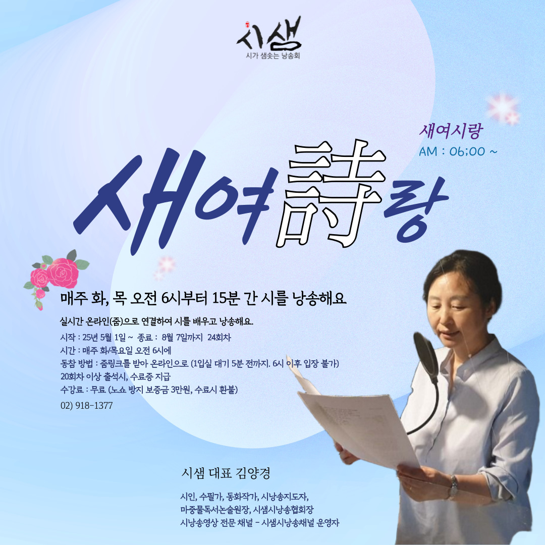 '25년 새여시랑 2기 시낭송가 수료증'을 드려요.