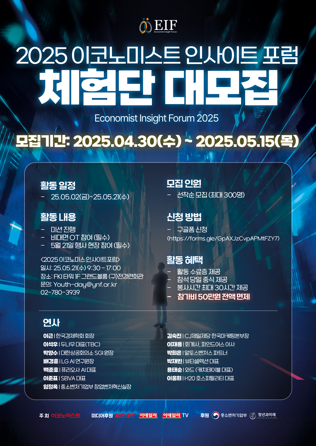 다가오는 2025 이코노미스트 인사이트 포럼을 함께 만들어갈 청년을 모집합니다!