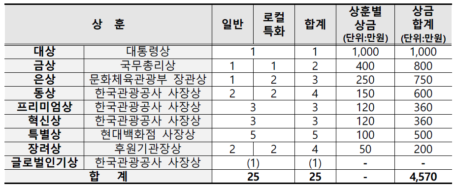 *글로벌 인기상은 최종 수상작 25점 중 ‘2차 심사 외국인 심사단(100여명)’의 최고점을 얻은 작품에 수여하는 상으로 별도 상금 없음