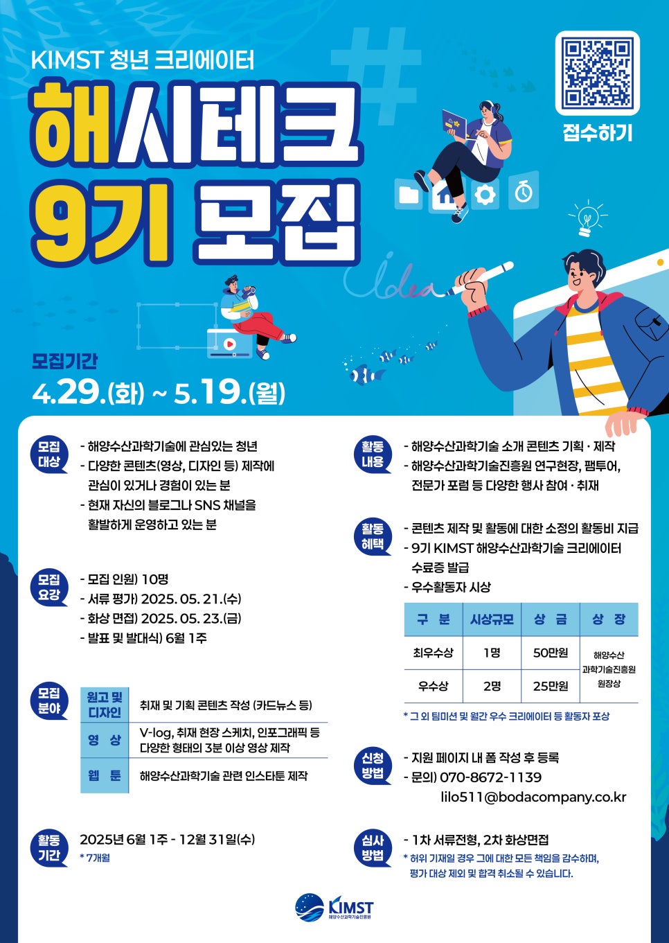 우수상 2명 / 상금 25만원 / 해양수산과학기술진흥원원장상