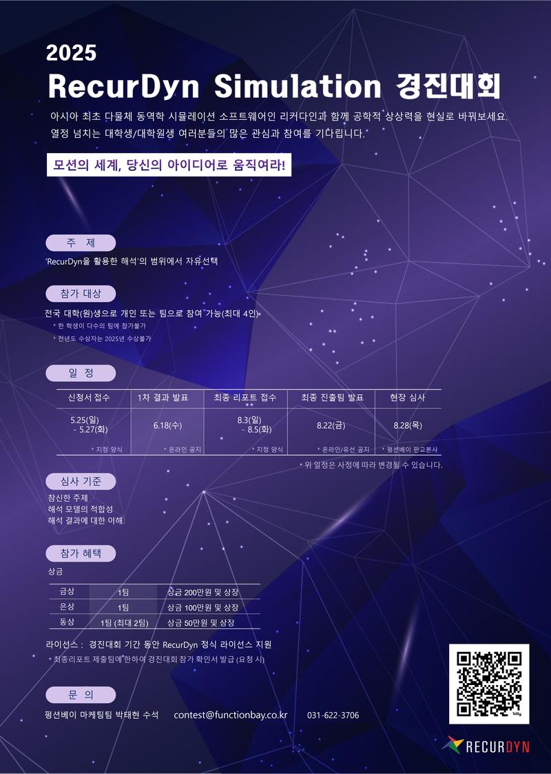 - ‘2025 RecurDyn Simulation 경진대회’ 관련 궁금한 내용은 Q&A 를 참고해주세요.