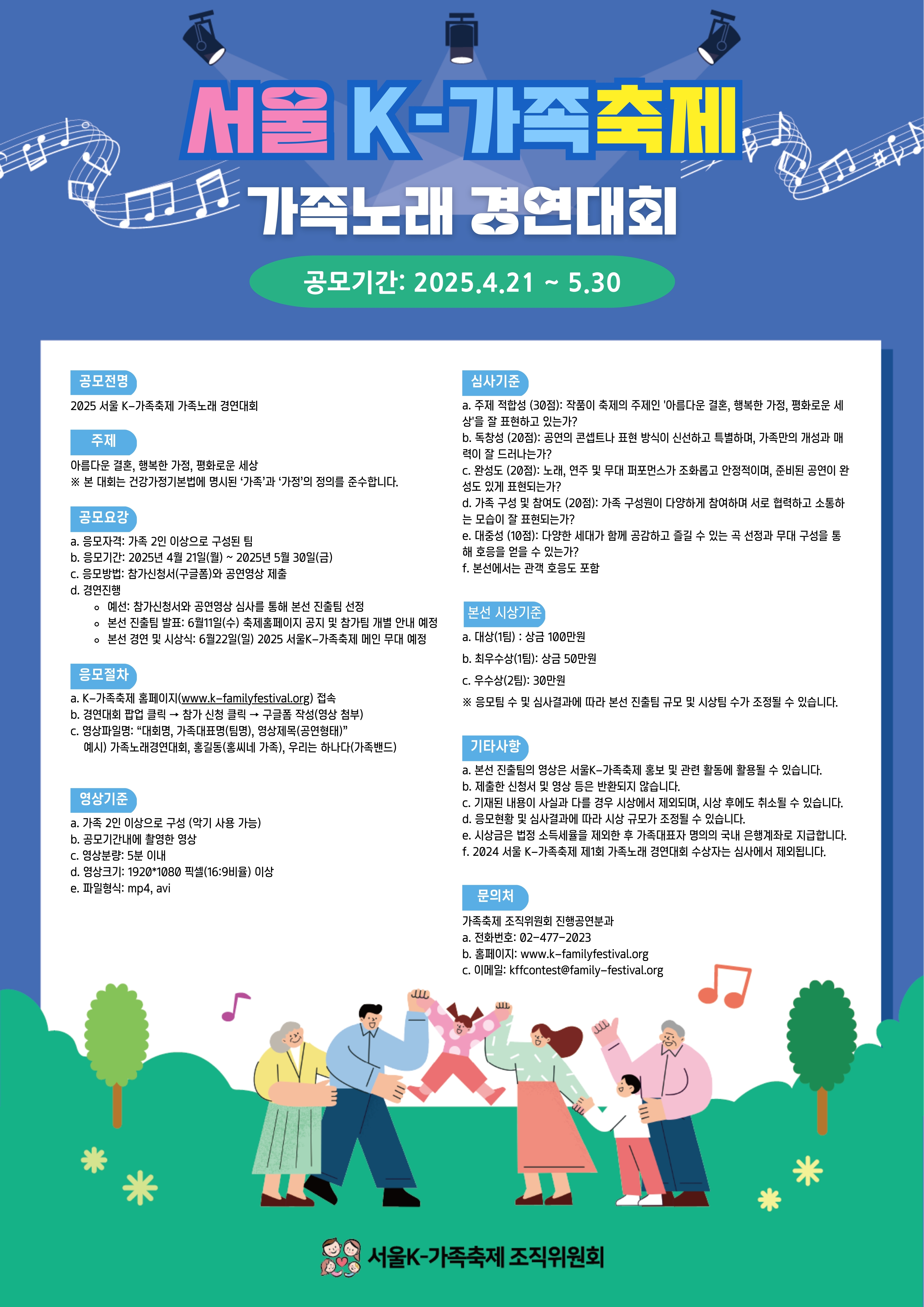 1. 대회명: 2025 서울 K-가족축제 가족노래 경연대회