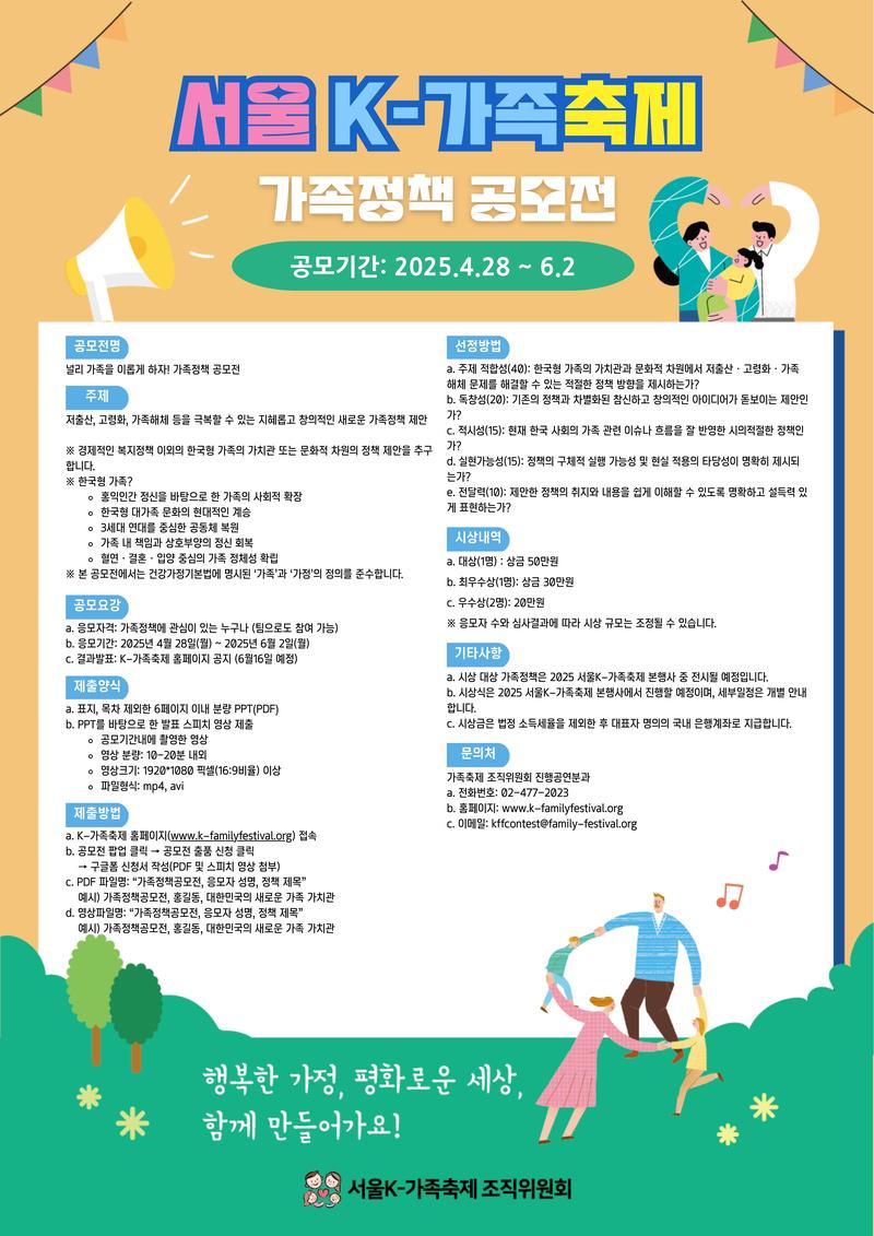 l 시상 대상 가족정책은 2025 서울K-가족축제 본행사 중 전시될 예정입니다.