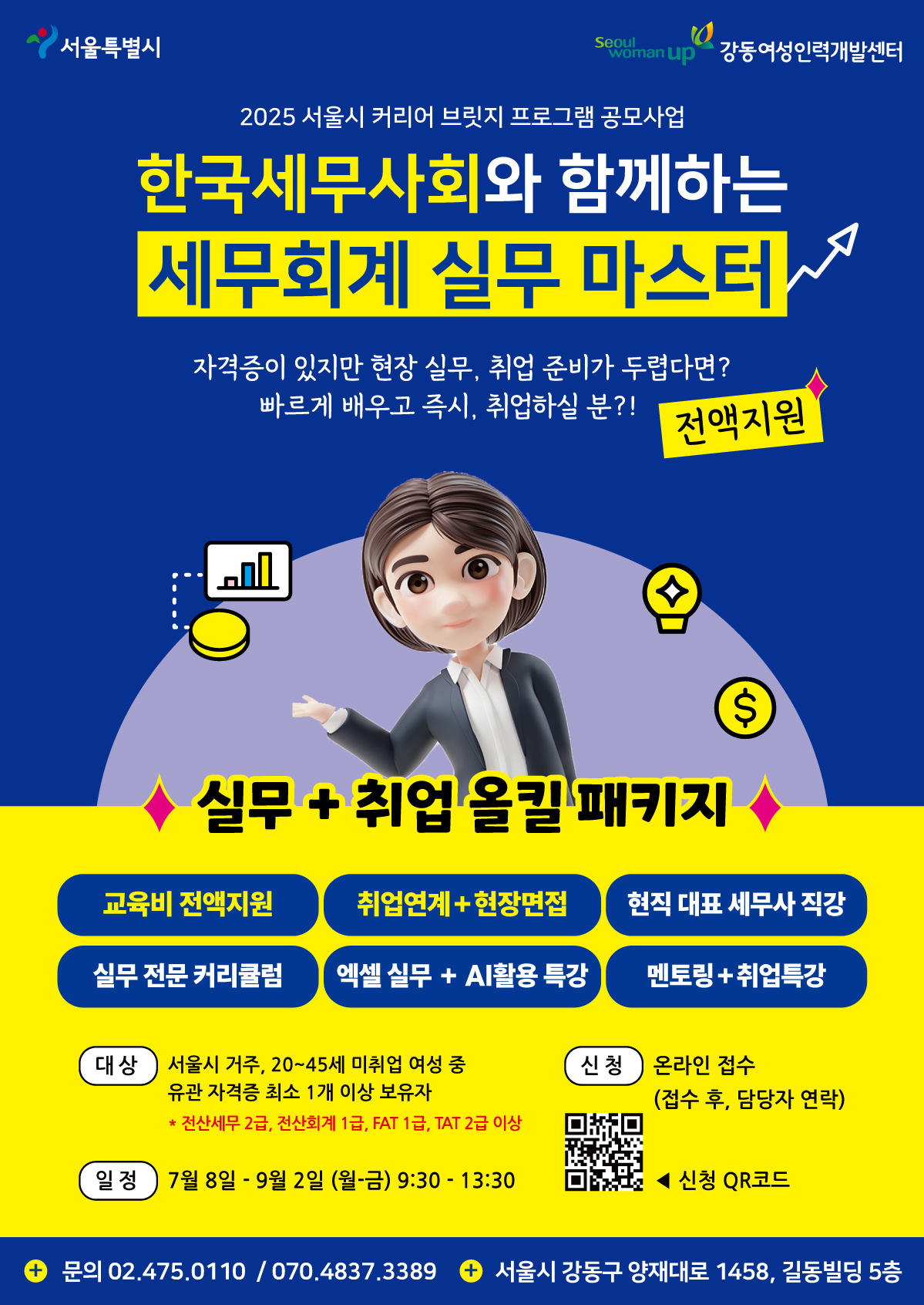 - 강동여성인력개발센터 홈페이지 접수 및 이메일로 서류 제출: https://gd.seoulwomanup.or.kr/gd/edu/selectPageListNxndr.do