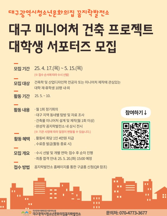 - 모집 대상: 건축학 및 산업디자인학 전공자 또는 미니어처 제작에 관심 있는 대학생 누구나!