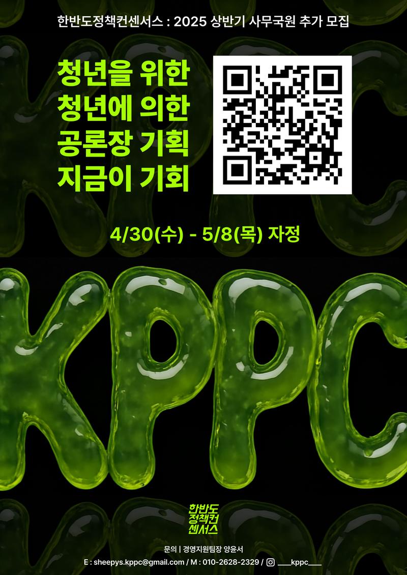 한반도정책컨센서스 경영지원팀장 양윤서 (E: sheepys.kppc@gmail.com / M: 010-2628-2329) 또는 인스타그램 @___kppc___