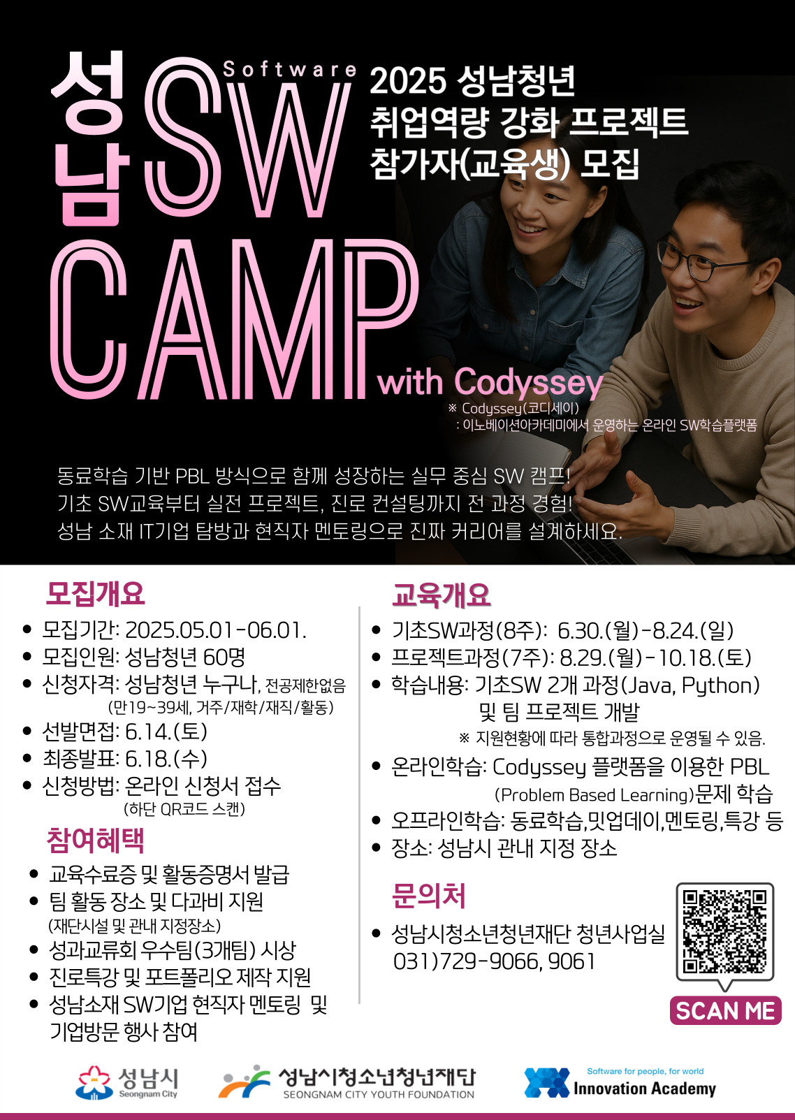 성남시청소년청년재단은 청년들의 실질적 SW직무 역량 강화와 취업역량 향상을 지원하기 위해 「2025 성남청년 취업역량 강화 프로젝트 - 성남 SW Camp with Codyssey」를 운영합니다.