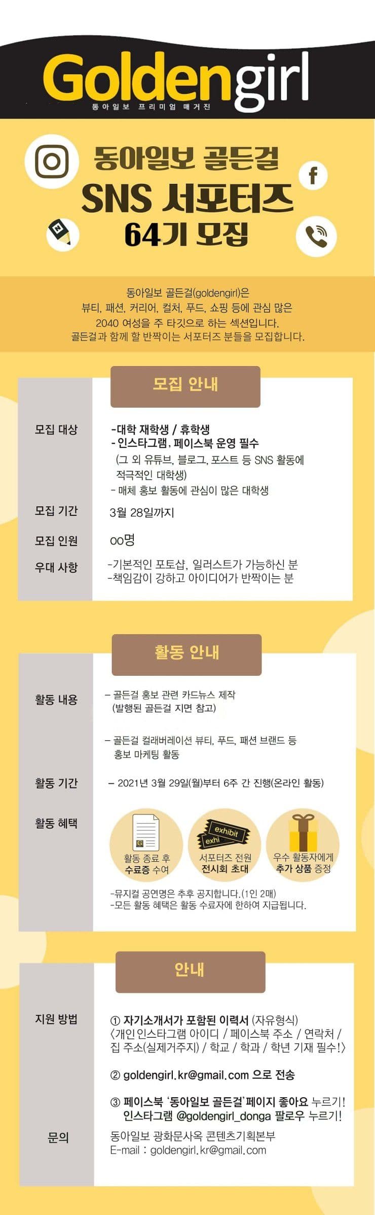 [동아일보] 골든걸 SNS 서포터즈 64기 모집