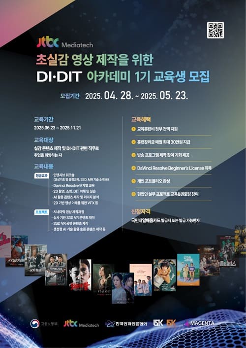 - 교육대상 : 실감 콘텐츠 제작 및 DI·DIT 관련 직무로 취업을 희망하는 자