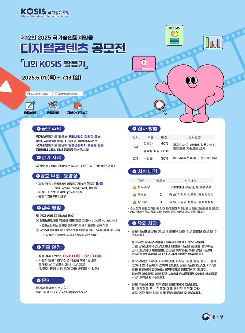 ※ 문의사항 : 통계청 통계서비스기획과 공모전 담당자