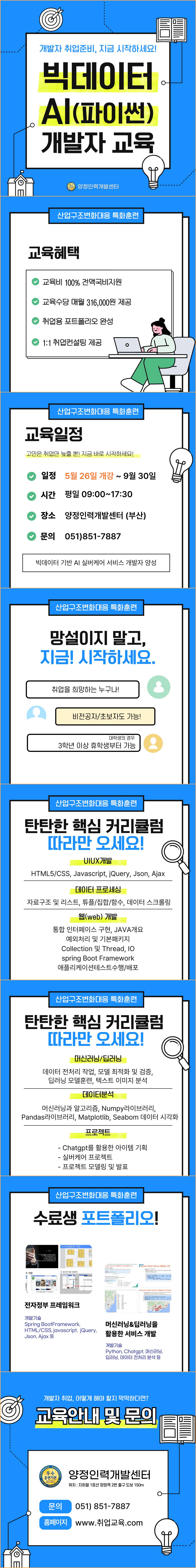 - 빅데이터 분석: 데이터 수집, 전처리부터 시각화까지 실무 능력 강화.