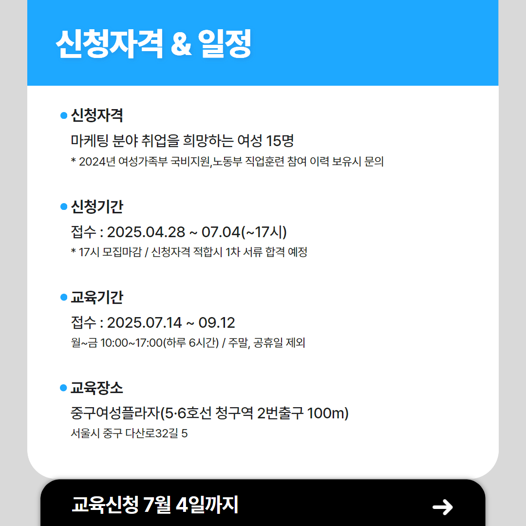 2025.07.14 ~ 2025.09.12 / 09시~17시(매주 월~금 (6시간) / 주말 및 공휴일 제외)
