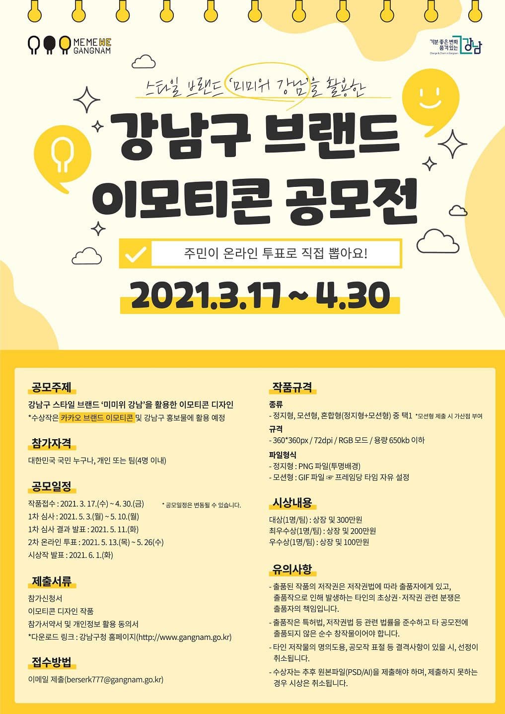 * 수상작은 카카오 브랜드 이모티콘 및 강남구 홍보물에 활용 예정