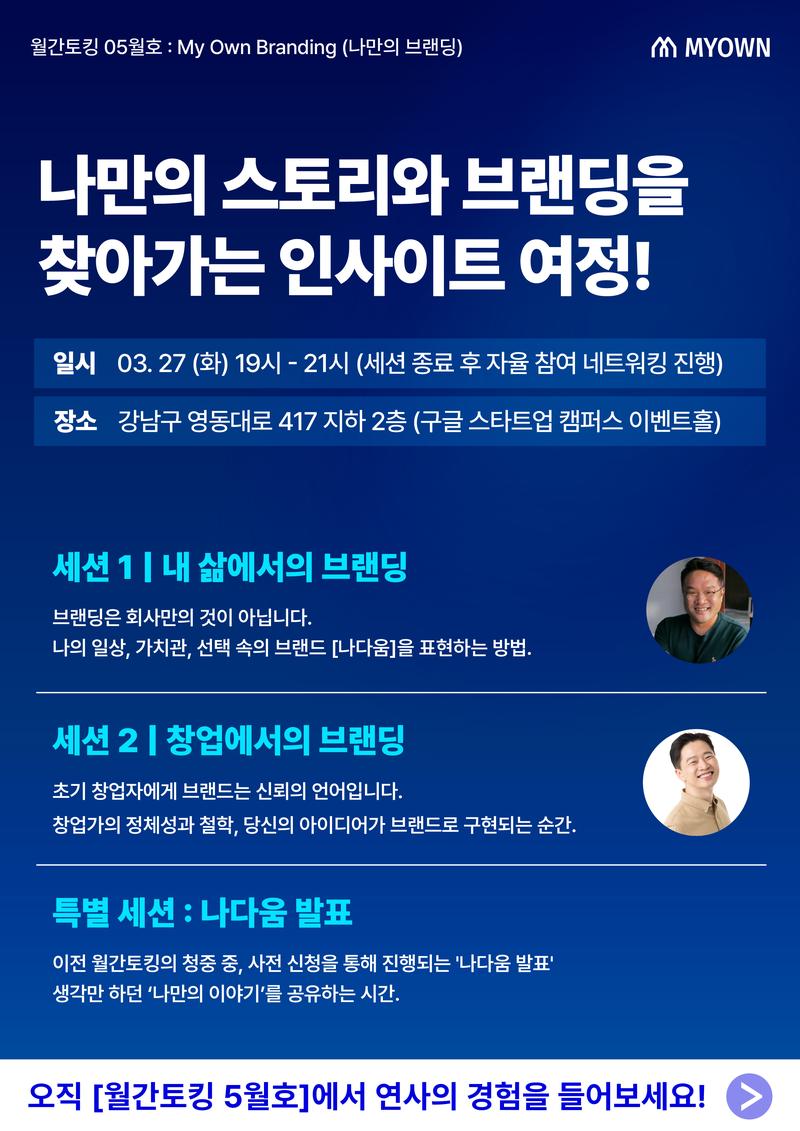 월간토킹 5월호 [My Own Branding]에 초대합니다.🙌