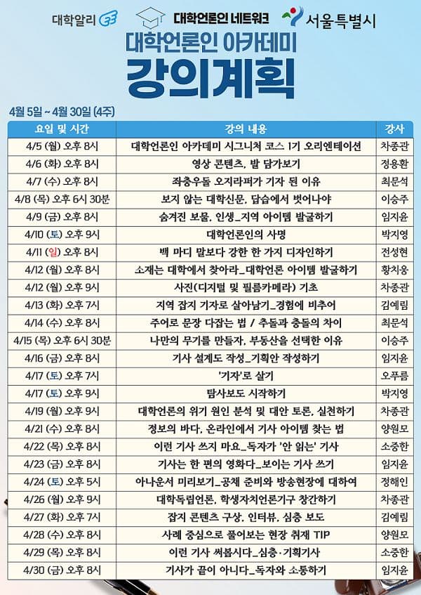 [대학언론인 아카데미] 대학언론인 대상 무료 교육을 제공합니다.