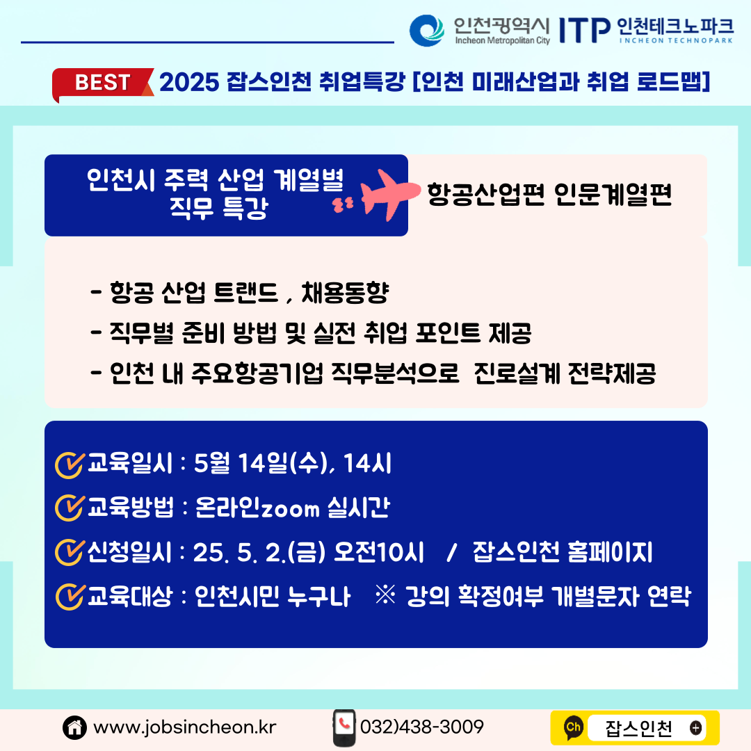 [job's인천]참여자모집_2025년 잡스인천 취업특강 [인천 미래산업과 취업 로드맵] (5/14)