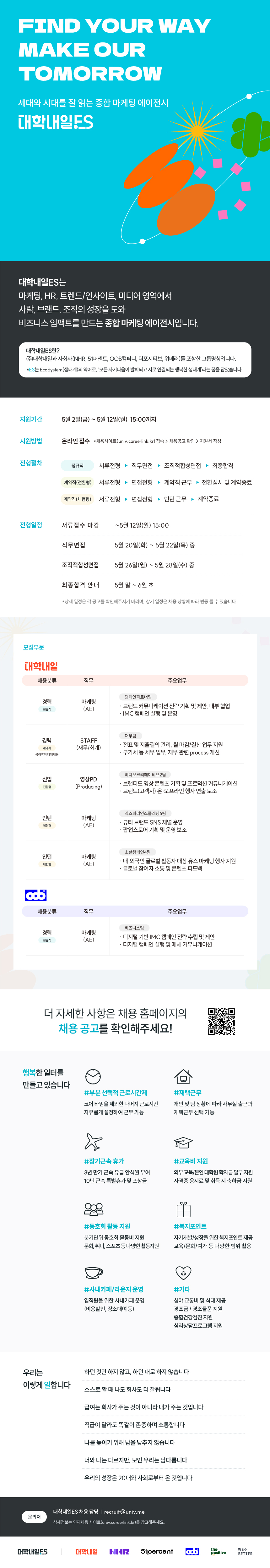 서류전형 : ~5/12 15:00 (*합불 여부와 관계 없이 지원해주신 모든 분들께 메일 및 마이페이지를 통해 결과를 안내 드립니다.)