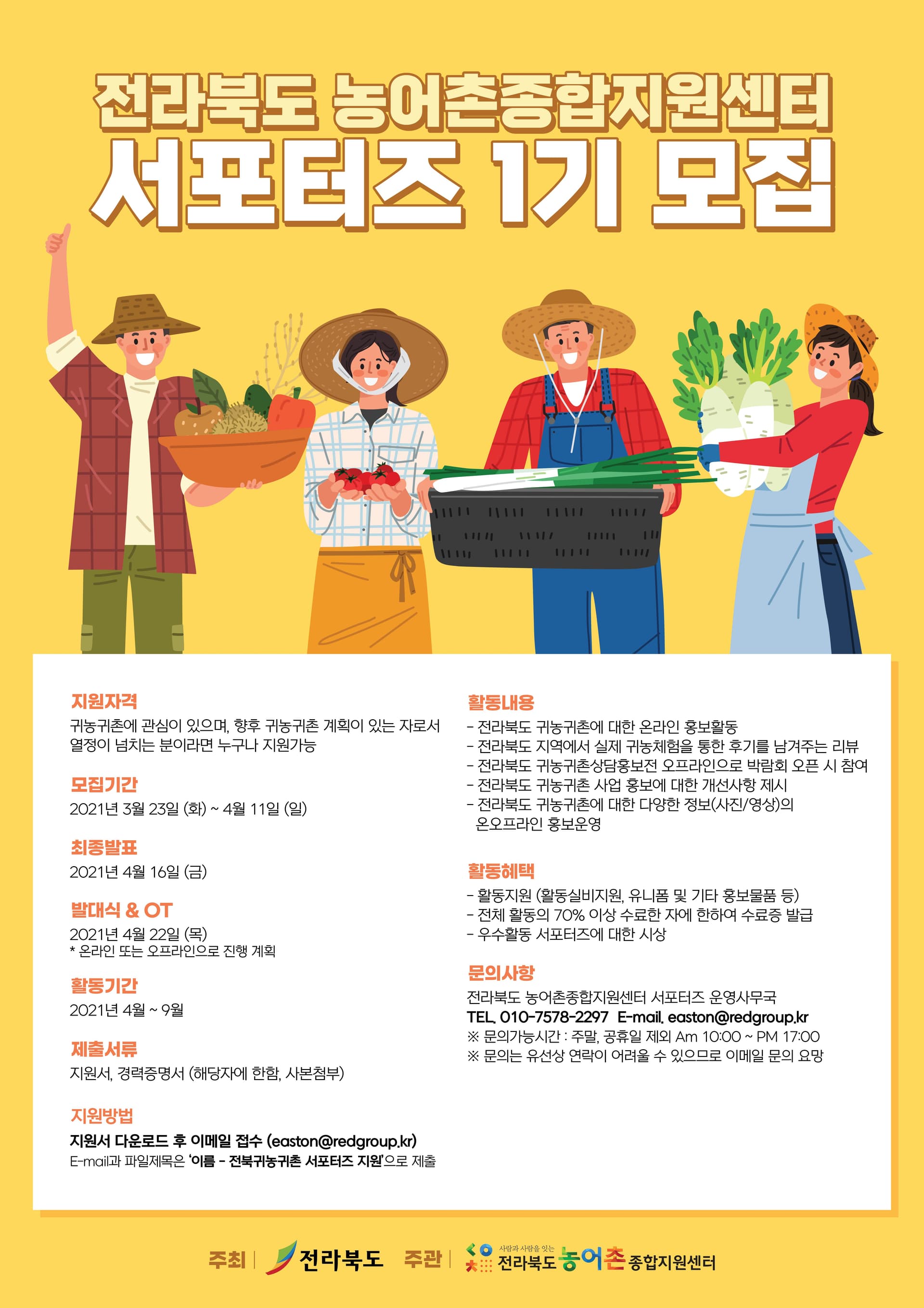 E-mail과 파일제목은 ‘이름-전북귀농귀촌 서포터즈 지원’ 으로 제출