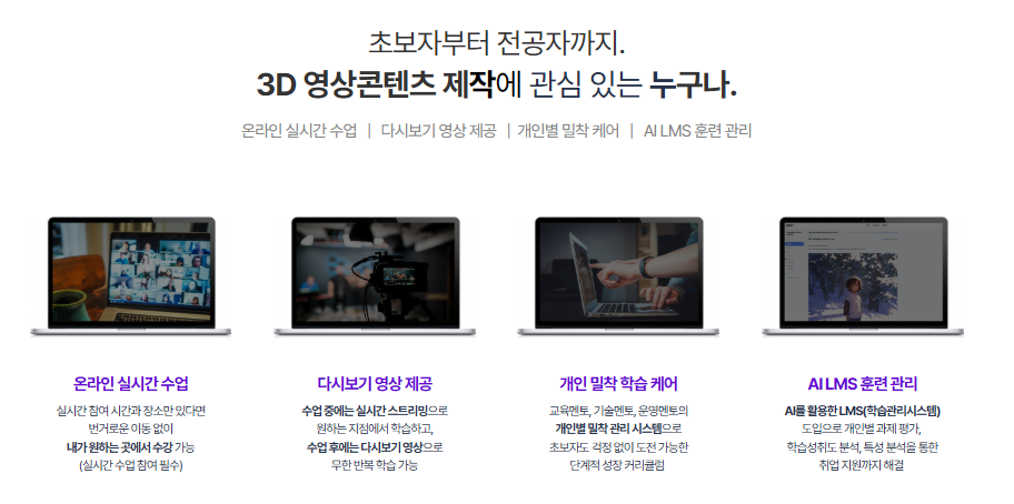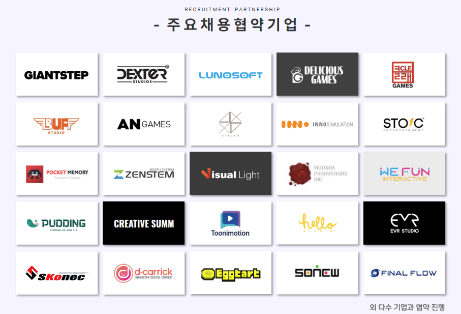 - 국내기업(MBC+, 덱스터, 자이언트스텝 등) 인턴십 2개월 기회 제공