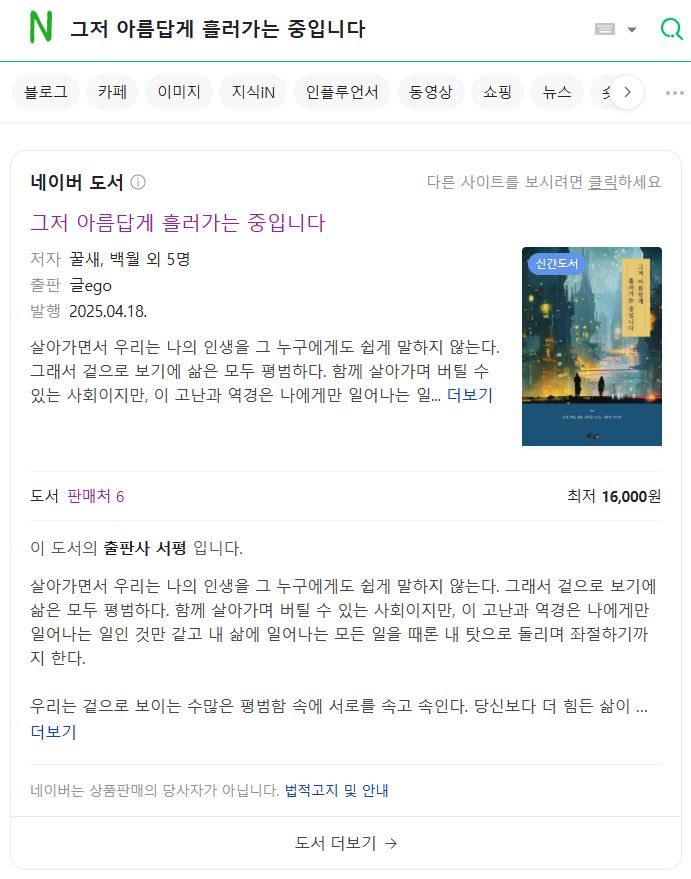 <네이버 도서 – 그저 아름답게 흘러가는 중입니다>