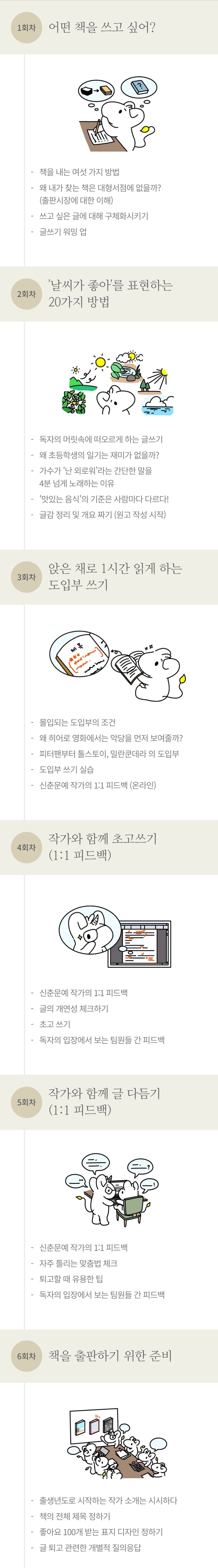 책 쓰기 프로젝트는 총 6회차로 진행됩니다.
