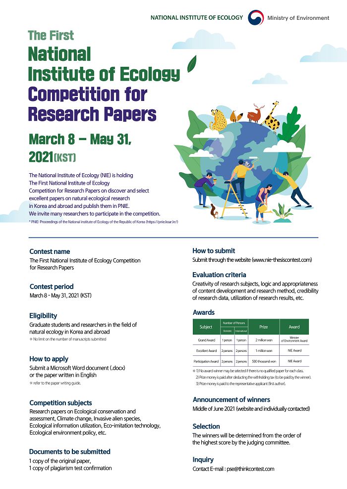 The National Institute of Ecology (NIE) is holding The First National Institute of Ecology Competition for Research Papers to discover