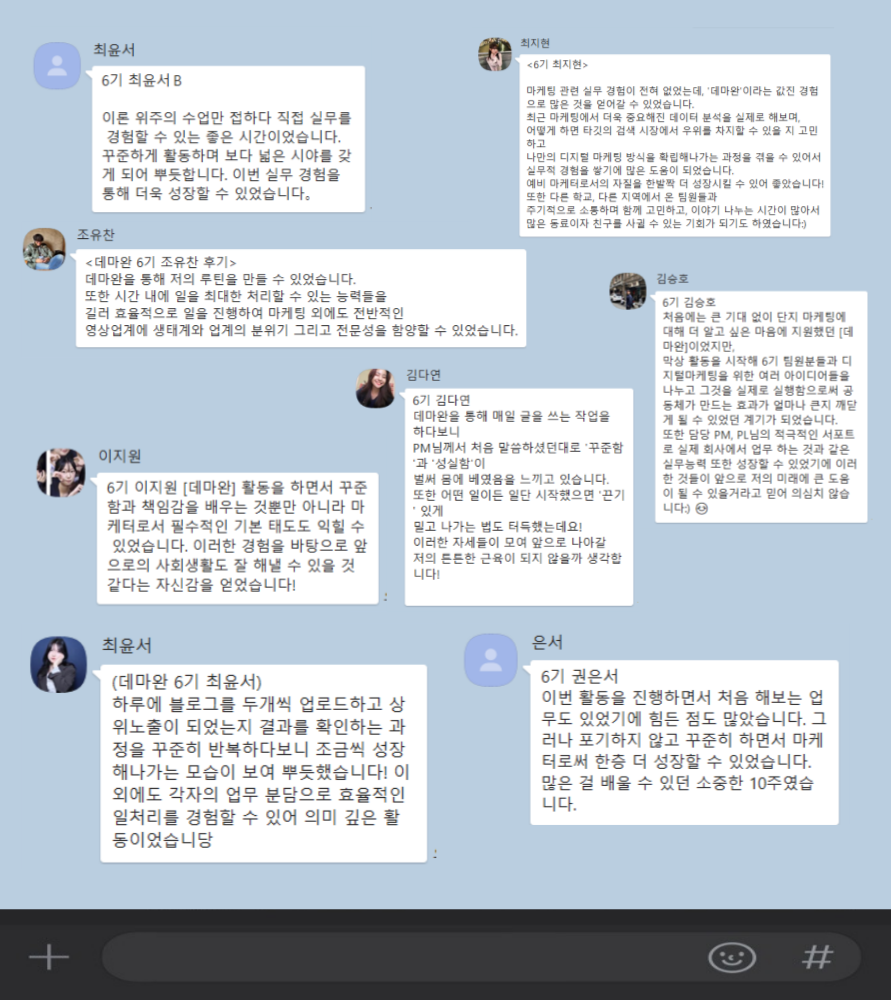 - 활동 기간 중 디지털 마케팅 특강 1회 (대기업 출신 멘토)