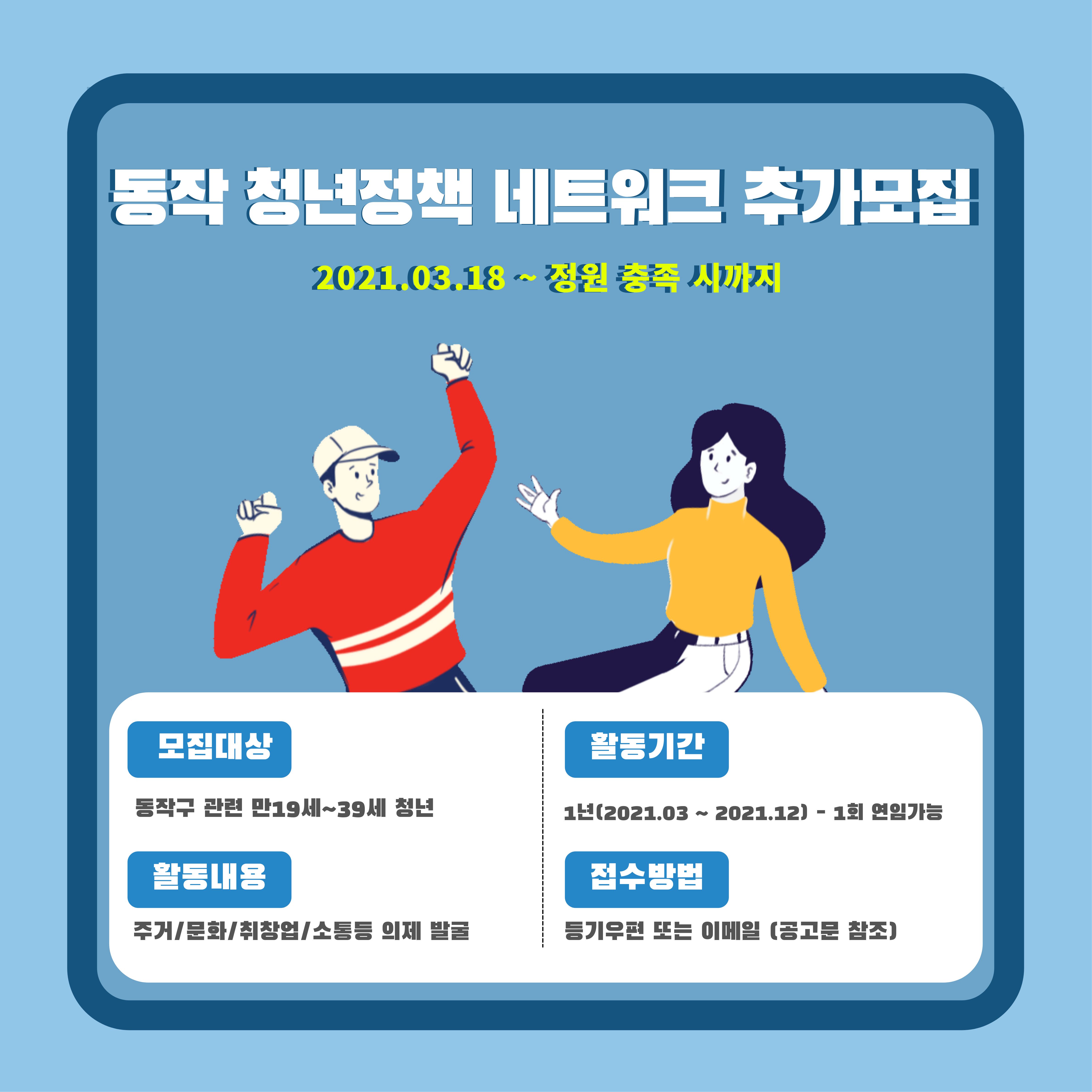 2021년 「동작 청년정책 네트워크」 추가모집 공고