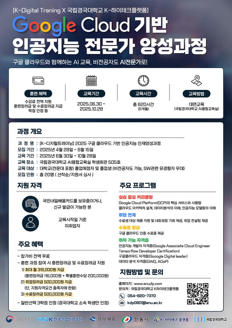 2025년 K-Digital Training Google Cloud 기반 인공지능 전문인력 양성과정 교육 오픈!