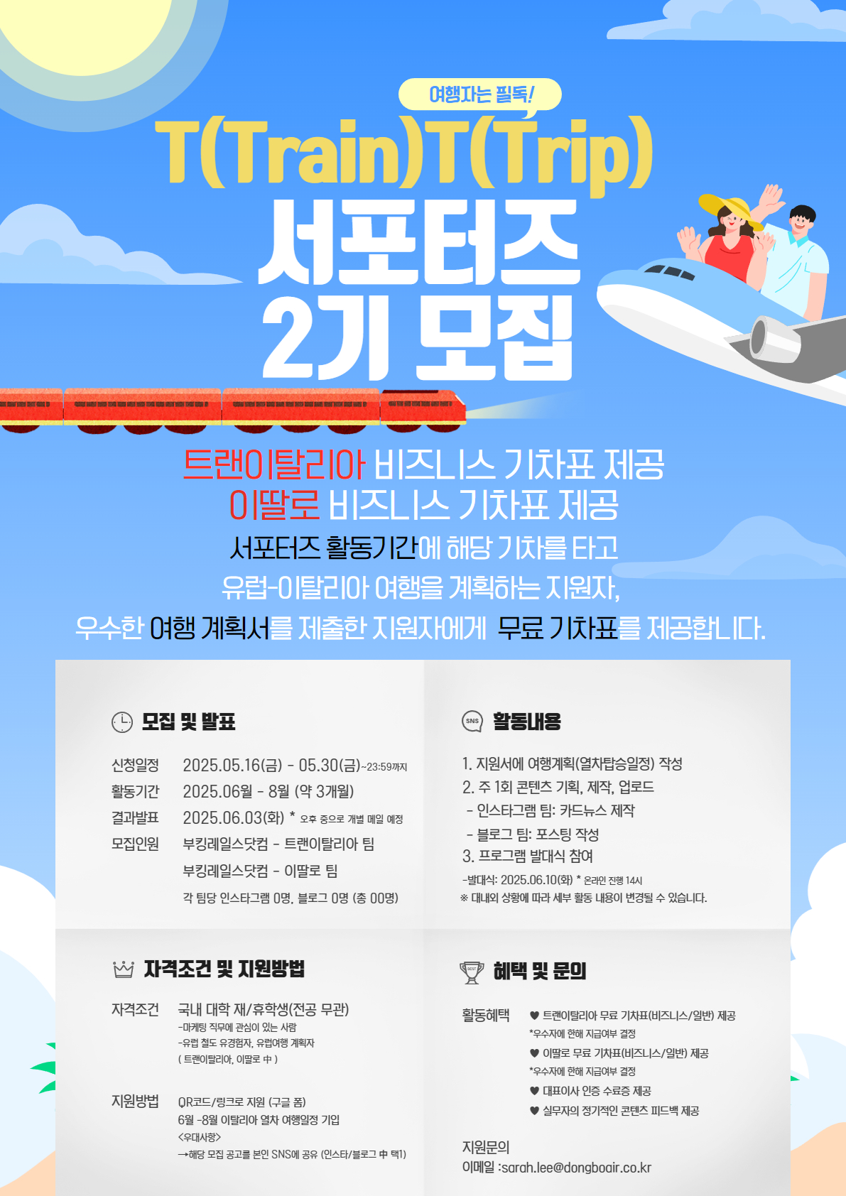 -트랜이탈리아 무료 기차표 *우수자에 한해 지급여부 결정
